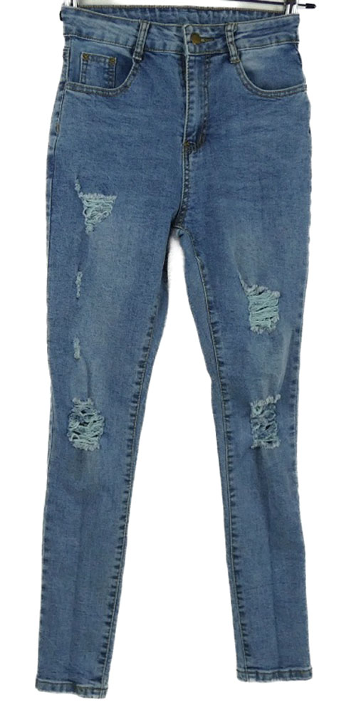 Dámské světlemodré skinny rifle s prošoupáním Shein
