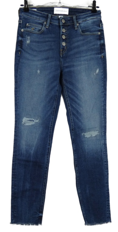 • Dámské tmavomodré roztřepené kotníkové rifle s dírami Calvin Klein vel. 29