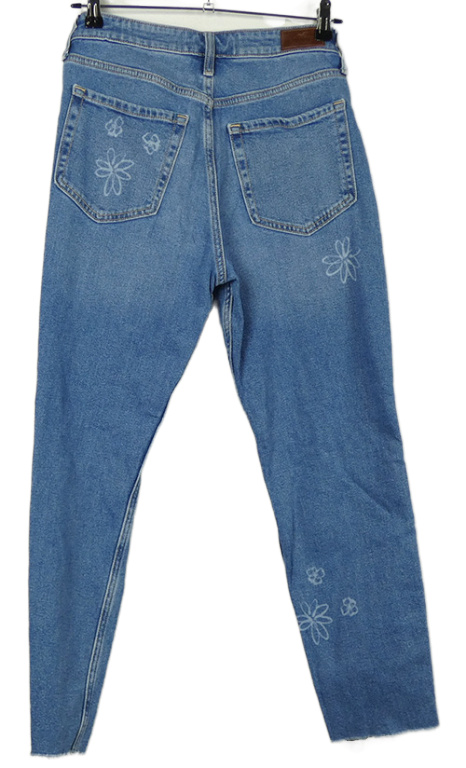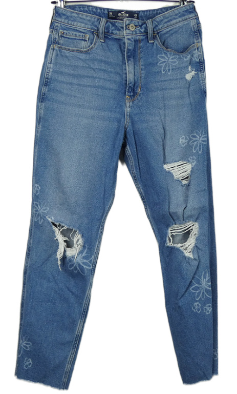 Dámské modré rifle s kytičkami a dírami Hollister vel. 28/27