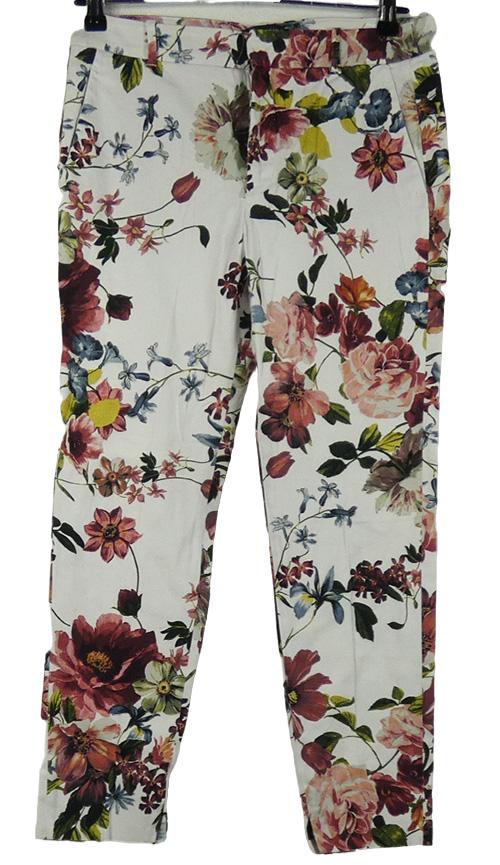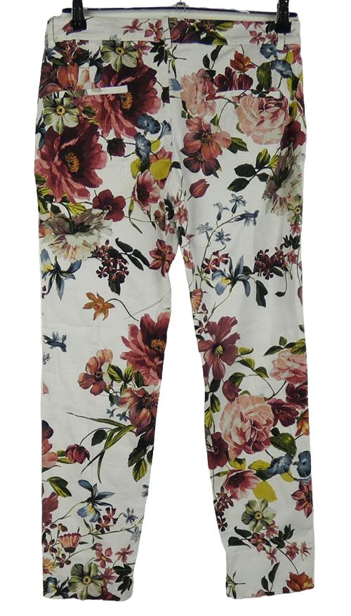 Dámské bílé květované plátěné chino kalhoty Zara