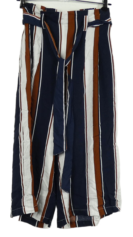 • Dámské tmavomodro-hnědo-bílé pruhované culottes kalhoty s páskem Primark