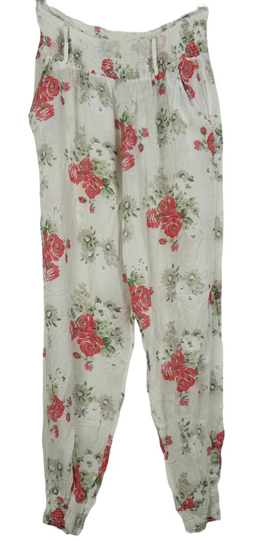 Dámské bílé květované harémové kalhoty