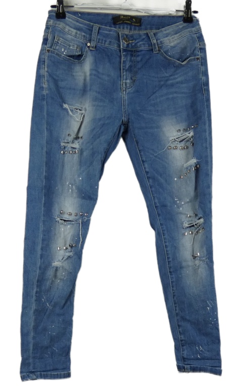 Dámské světlemodré skinny rifle s dírami a cvočkami