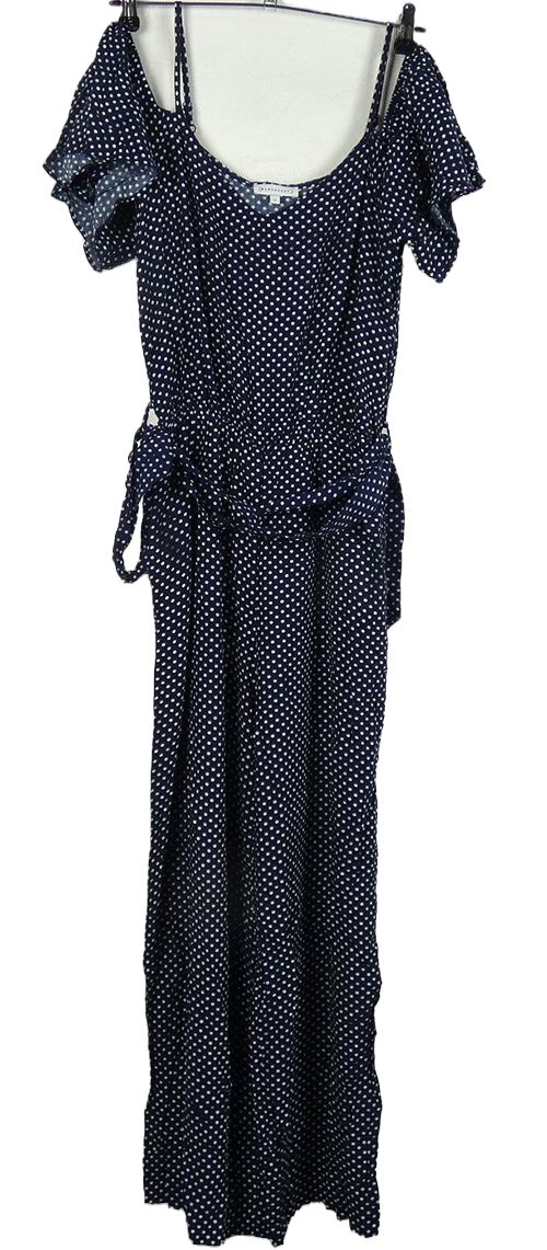 Dámský tmavomodrý puntíkovaný letní palazzo kalhotový overal s páskem Warehouse