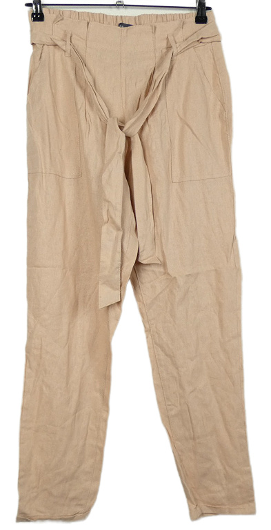 Dámské světlerůžové lněné paper bag kalhoty s páskem Primark
