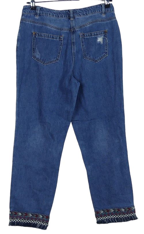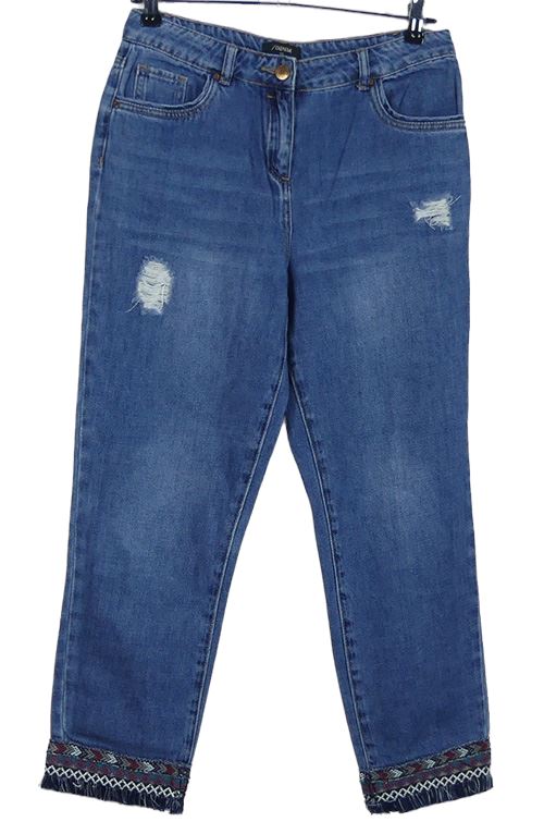 Dámské světlemodré capri rifle s prošoupáním a výšivkou Denim