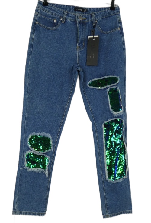 Nové - Dámské modré kotníkové rifle s dírami a flitry LOTD