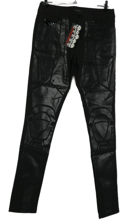 Nové - Dámské černé potažené vzorované kalhoty
