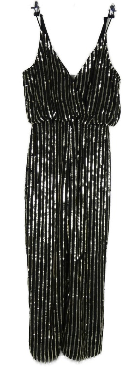 Dámský černo-zlatý flitrový kalhotový palazzo overal French Connection