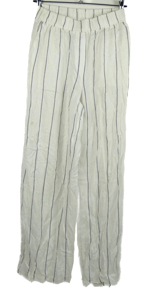 Dámské smetanovo-modré pruhované volné lněné kalhoty vel. 38L
