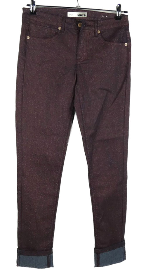 Dámské vínové třpytivé skinny rifle Topshop