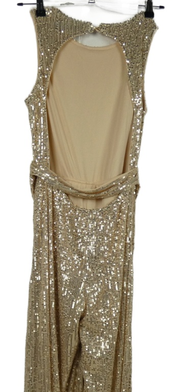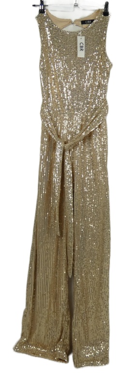 • Nové - Dámský zlatý flitrový kalhotový společenský overal s páskem CBR