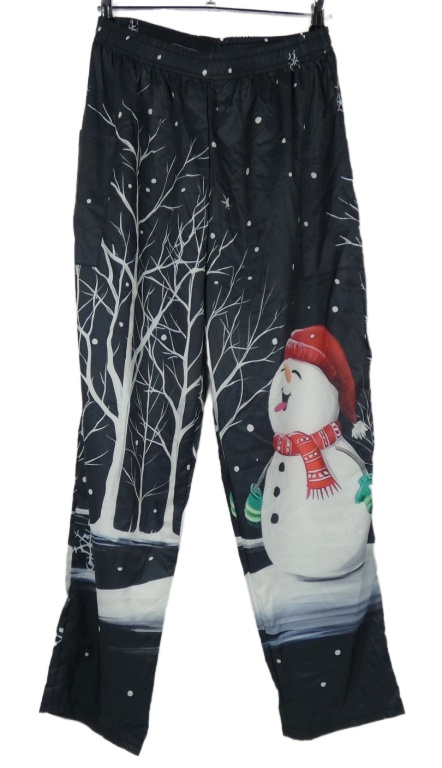 Dámské tmavošedé šusťákové kalhoty se sněhulákem