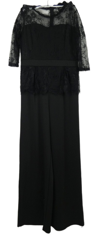 Dámský černý společenský kalhotový overal s krajkovým živůtkem