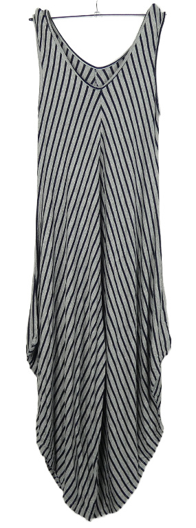 Dámský šedo-tmavomodrý pruhovaný culottes overal