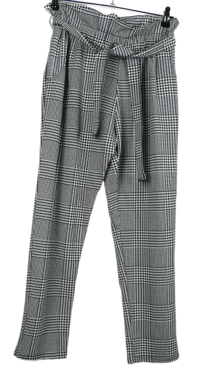 Dámské černo-bílé vzorované paperbag kalhoty s páskem