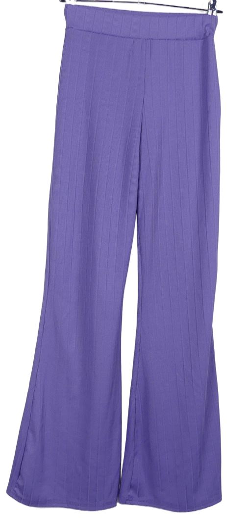 Dámské fialové žebrované zvonové teplákové kalhoty