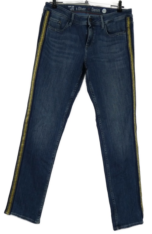Dámské tmavomodré slim fit rifle s pruhy S. Oliver