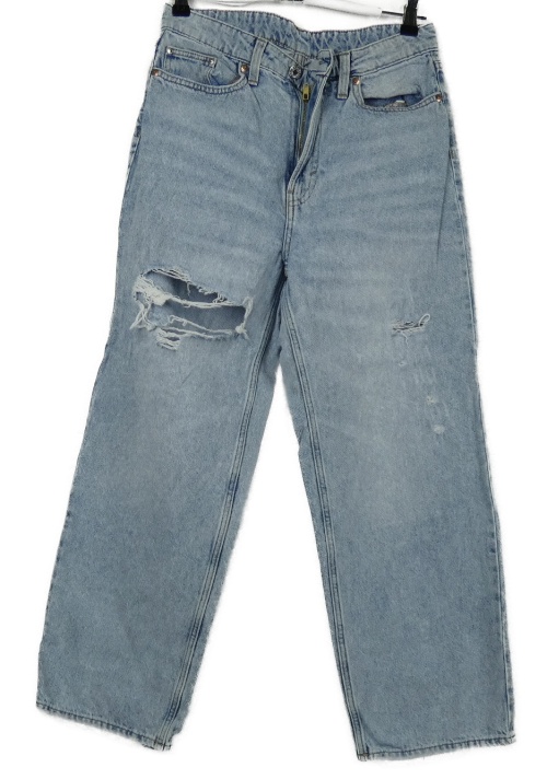 Dámské světlemodré loose straight rifle s dírami H&M