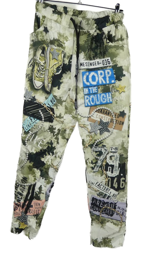 Dámské khaki-bílé teplákové kalhoty s potiskem