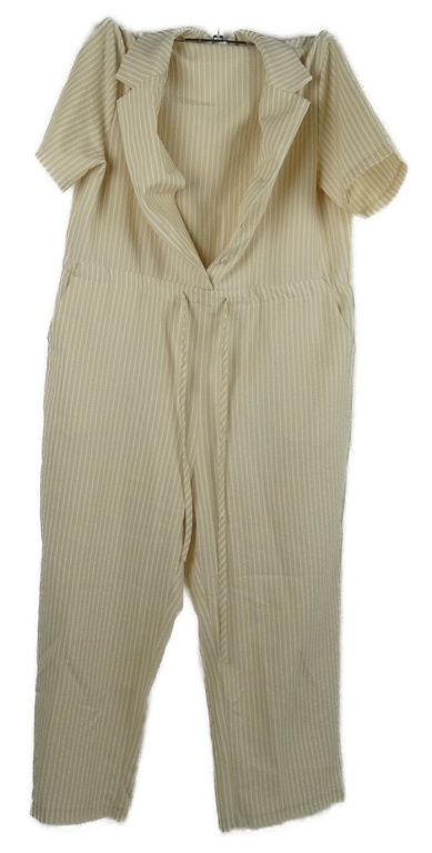 Dámský pudrovo-bílý proužkovaný krepový kalhotový capri overal
