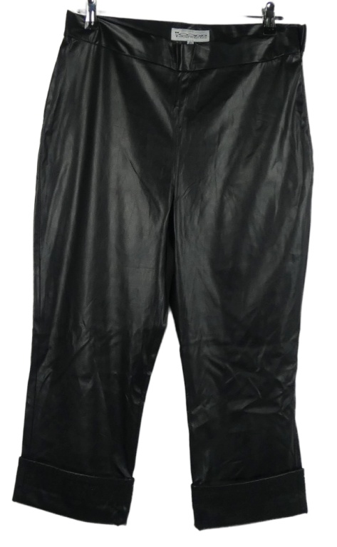 Dámské černé koženkové capri kalhoty s výšivkou