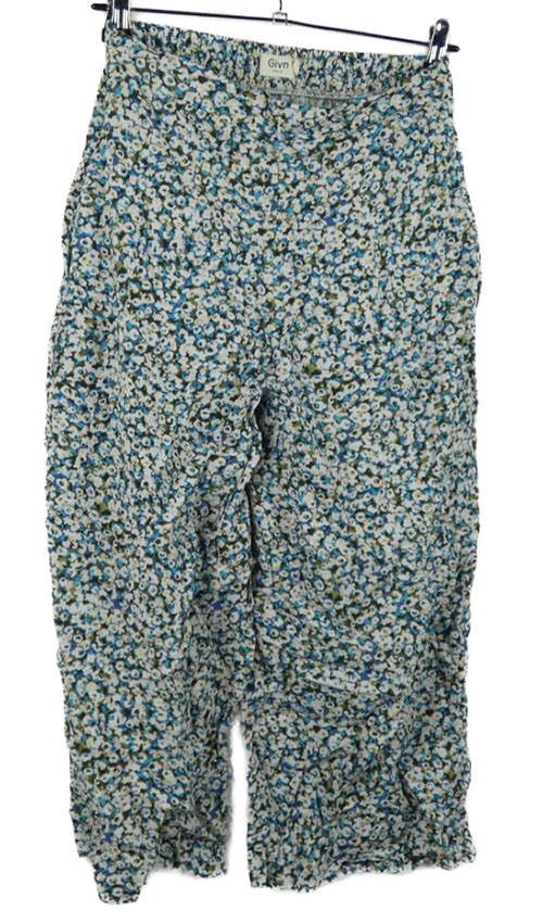Dámské khaki-modro-bílé kytičkované culottes kalhoty Givn