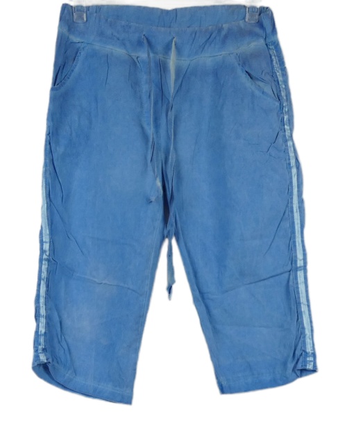 Dámské světlemodré elastické capri kalhoty s pruhy