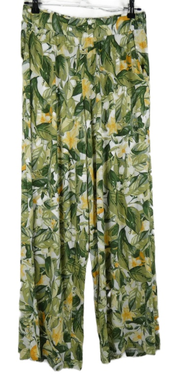 Dámské khaki-bílo-oranžové květované palazzo kalhoty Tchibo