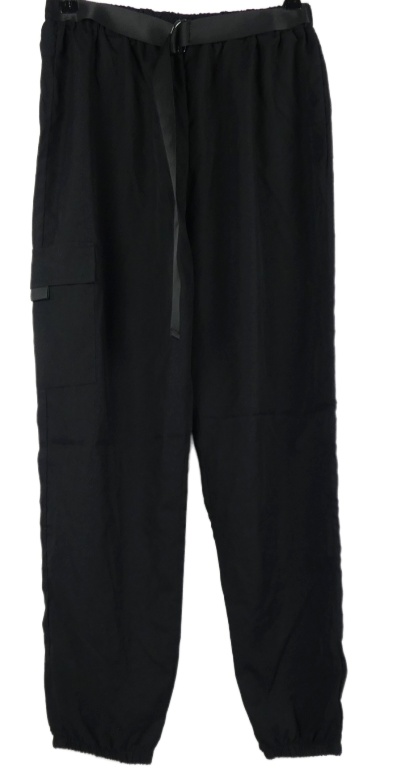 Dámské černé šusťákové volné kalhoty s kapsou a páskem Shein