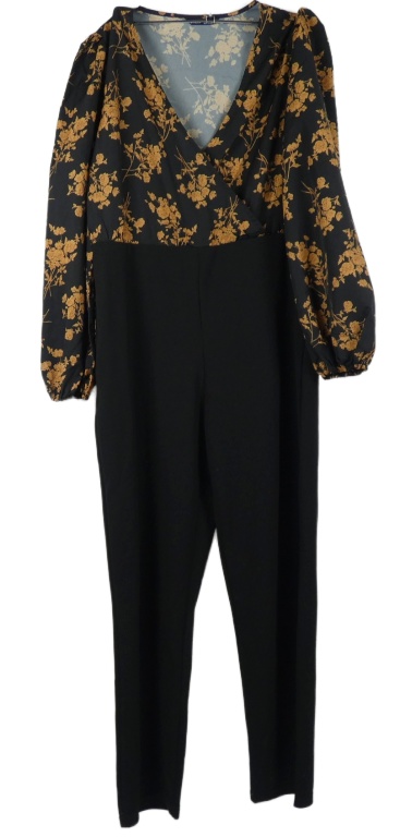 Dámský černo-hořčicový květovaný letní kalhotový overal Shein