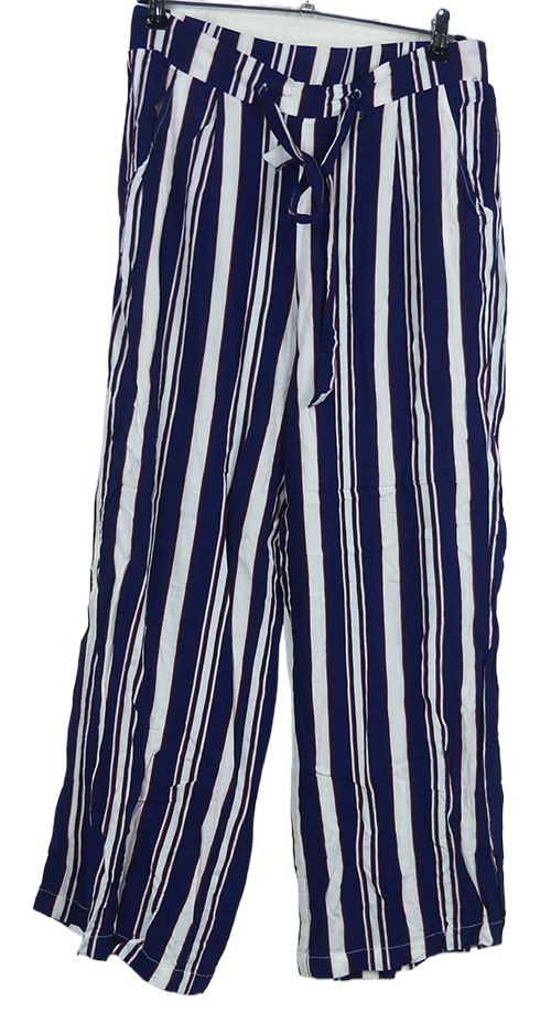 • Dámské tmavomodro-bílo-červené pruhované volné kalhoty s páskem Primark