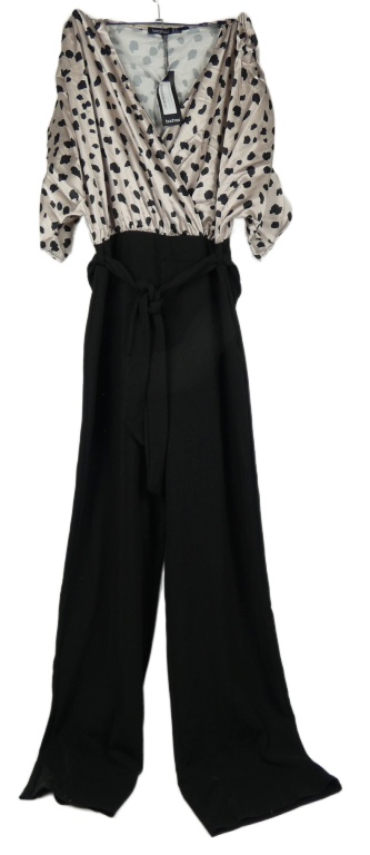 • Nové - Dámský růžovo-černý vzorovaný kalhotový overal s páskem Boohoo
