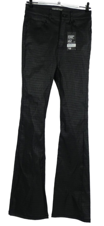 Nové - Dámské černé vzorované potažené flare kalhoty Denim