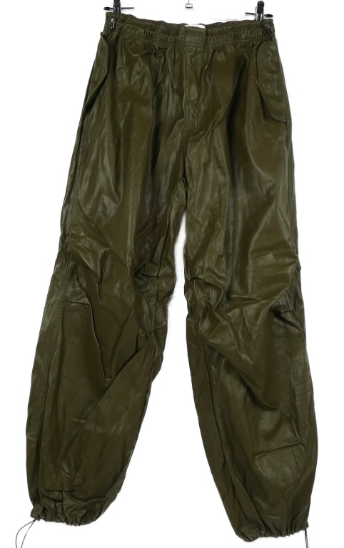 Dámské khaki koženkové cuff kalhoty Bershka