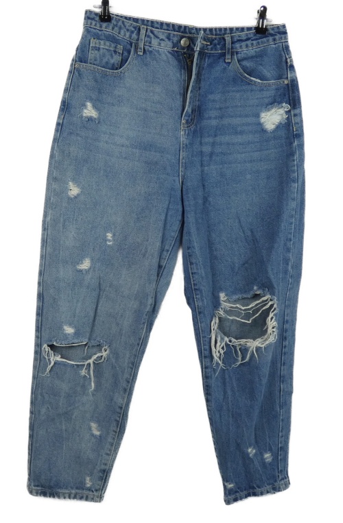 Dámské modré mom rifle s dírami Shein