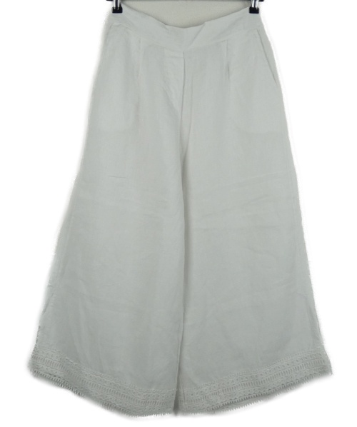 Dámské bílé lněné culottes kalhoty s krajkou
