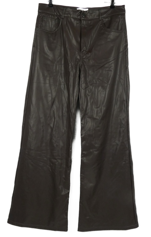 Dámské hnědé koženkové široké kalhoty Pull&Bear