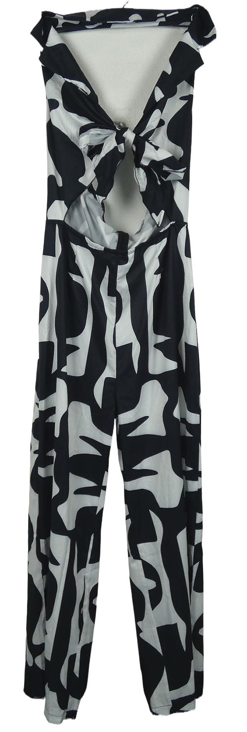 • Dámský černo-bílý vzorvaný saténový kalhotový overal s průstřihem Shein