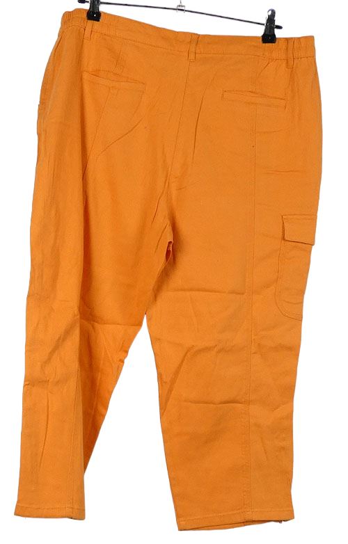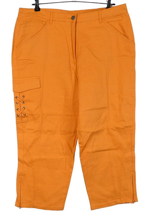 Dámské oranžové plátěné capri kalhoty s výšivkou