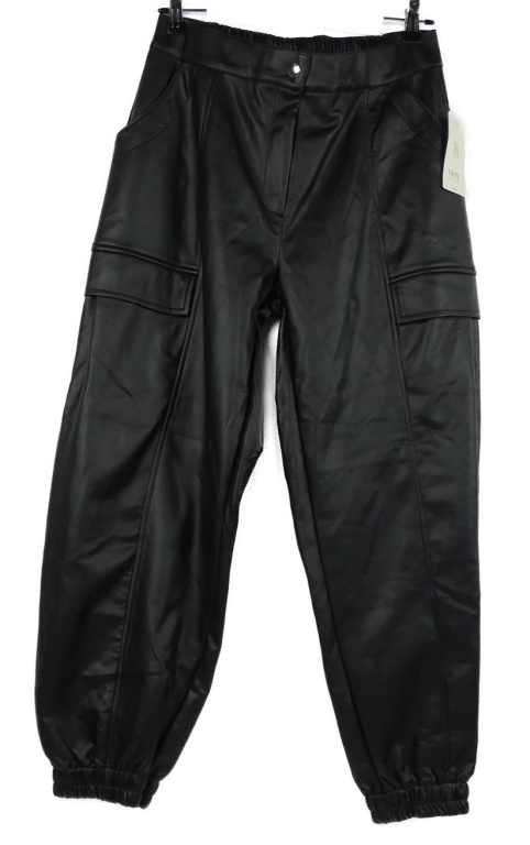 Nové - Dámské černé koženkové cargo kalhoty s kapsami