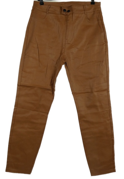 Dámské skořicové koženkové slim kalhoty