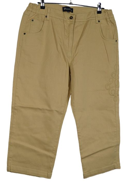 Dámské béžové capri rifle s výšivkou Denim&Co