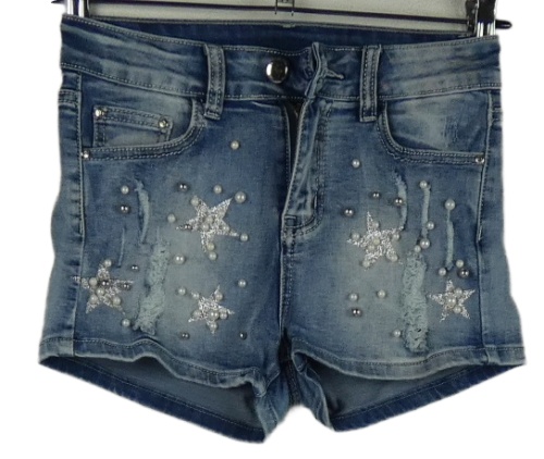 Dámské světlemodré riflové kraťasy s hvězdičkami a korálky