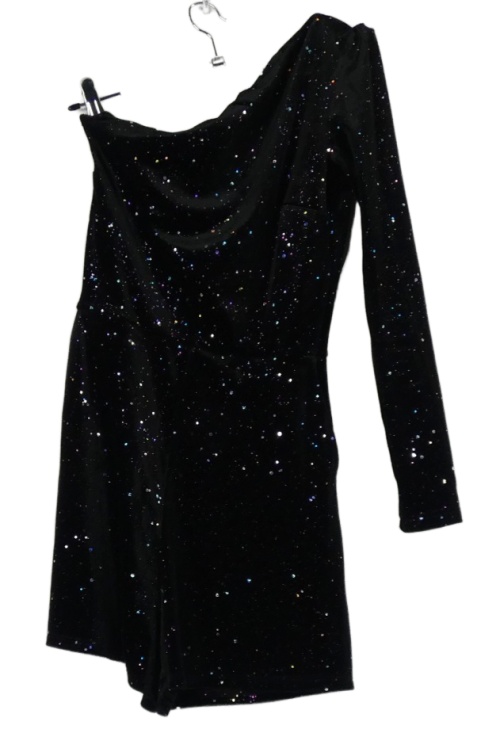 Dámský černý třpytivý sametový kraťasový asymetrický overal Tally Weijl