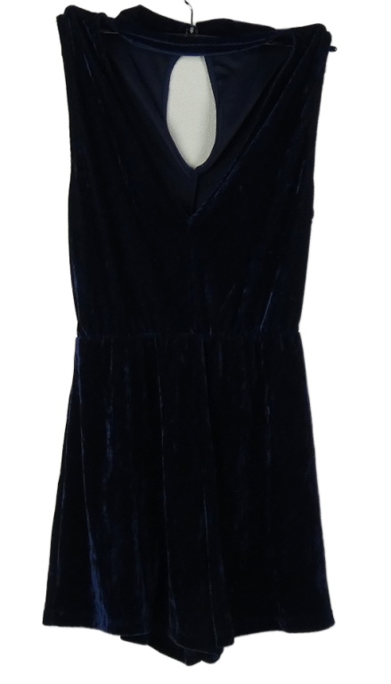 Dámský tmavomodrý sametový kraťasový overal s hlubokým výstřihem a chokerem Pull & Bear