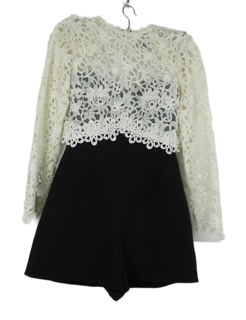 Dámský černo-bílý kraťasový overal s krajkovým živůtkem Topshop