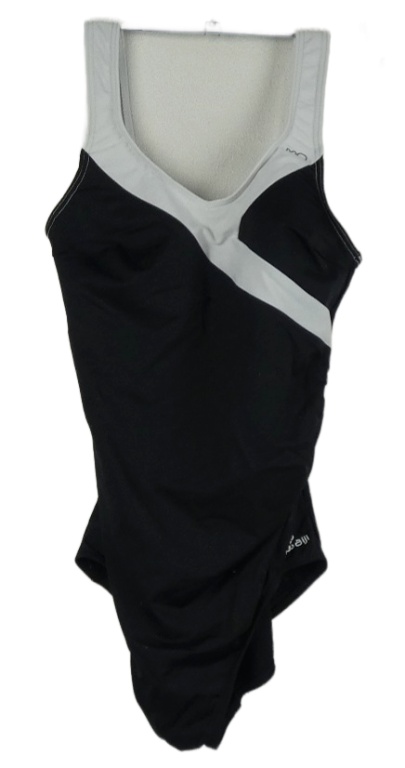 Dámské černo-bílé jednodílné plavky s pruhy Nabaiji