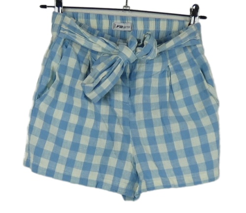 Dámská světlemodro-bílé kostkované lněné kraťasy s páskem FB Sisters