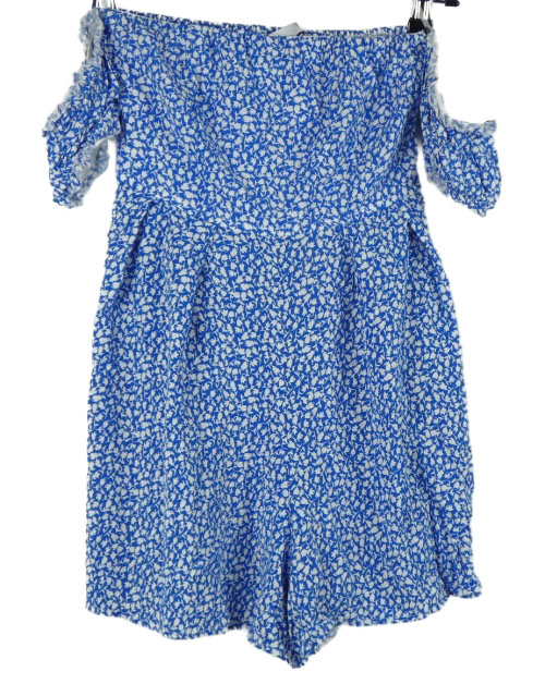 Dámský modro-bílý kytičkovaný žabičkový letní overal s volnými rameny FB Sister